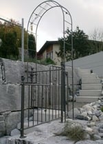 Ein geschmiedeter Handlauf, ein verschnörkeltes Fenstergitter,
